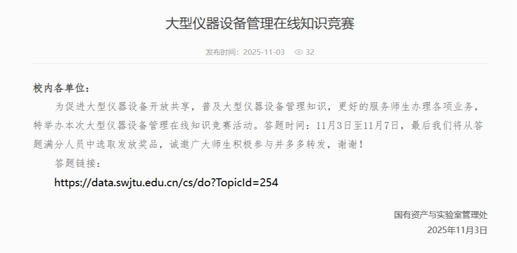 千余师生踊跃参与,管理政策深入人心——大型仪器设备管理在线知识竞赛圆满完成