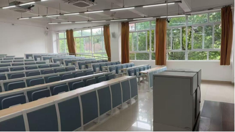 国有资产与实验室管理处利用暑期时间,对教学与生活设施进行了全面升级。犀浦校区2间公共教室340个课桌椅全面更换,采用E0级环保板材;九里校区四号教学楼大阶梯教室投影设备更新为高清投影仪,显著改善视听效果;两校区50间教室窗帘统一更换,全力保障新学期教学秩序正常,切实提升教学效果。实验室条件持续改善,为6间实验室安装12台空调,更新80个机房工位,提升科研与教学条件。