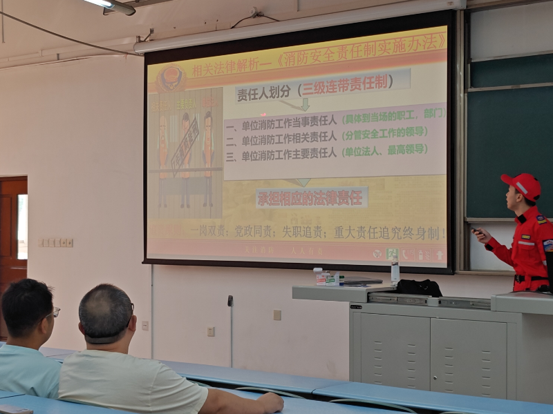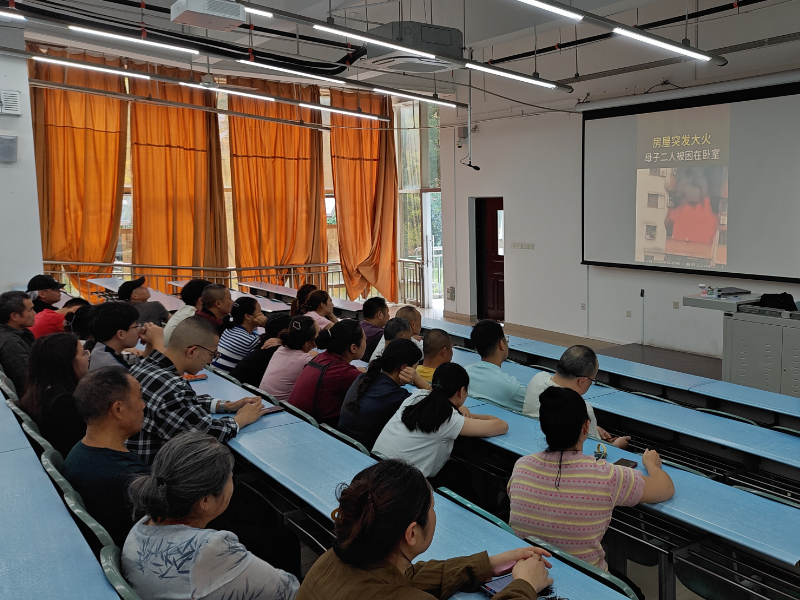 在讲座中,蒋教官详细阐述了火灾的多方面成因、电器设备的安全使用年限,并介绍了各类灭火器的特点及正确使用方法。同时,他还明确了火灾责任人的划分标准,强调一旦商区发生火灾,商铺的负责人将作为第一责任人承担相应责任。