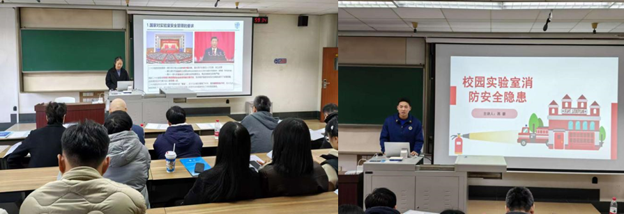 11月20日下午、12月5日中午,2025年度未来技术研究院实验室安全教育培训会在九里校区4号教学楼举行,本次会议实现了专任教师、各年级硕士研究生和博士生等培训对象的全覆盖。学校国有资产与实验室管理处冯涛副处长、吴琦老师,九里消防站指战员蒋豪,学院实验室安全工作分管领导,研究生培养工作分管领导,实验室秘书,实验室安全秘书,实验中心负责人,实验室安全员,以及各级硕博研究生近100人参会。副院长铁怀江主持会议。