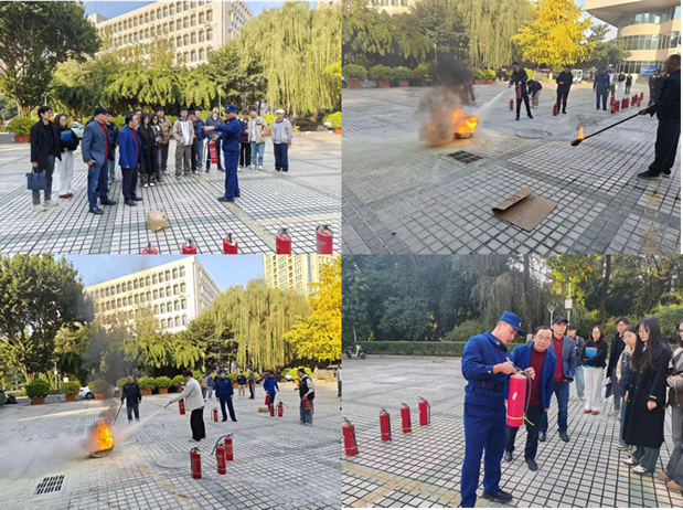 应急演练阶段,蒋豪组织全体师生前往大学生会堂前的空地,进行了灭火器的实操演练。在他的专业指导下,每位师生都亲手操作,熟练掌握了灭火器的正确使用方法。