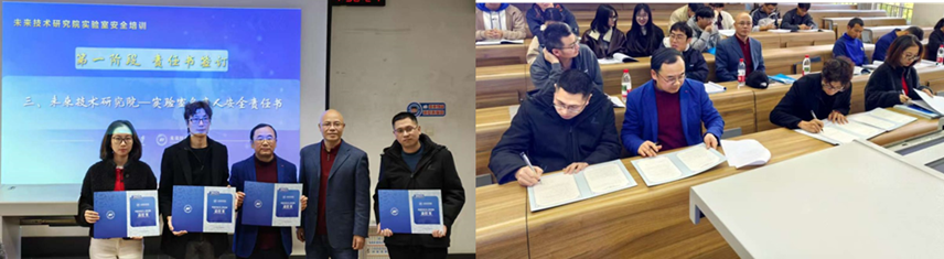 责任书签订阶段,在冯涛副处长的见证下,铁怀江代表学院与专业实验室负责人李余、刘晓晨、陈奎分别签订了《未来技术研究院-实验室安全责任书》,进一步明确了学院实验室安全管理责任,为构建安全有序的实验环境奠定了基础。
