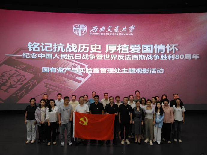 为铭记历史、缅怀先烈,深化爱国主义教育和理想信念教育,9月11日,国有资产与实验室管理处党支部组织开展 9月主题党日活动。上午11点犀浦校区综合楼403会议室,全体党员在支部书记邓永权同志带领下,深入学习了习近平总书记在纪念中国人民抗日战争暨世界反法西斯战争胜利80周年大会上重要讲话,并对荣获 2025年全国“最美教师”表彰的翟婉明院士先进事迹进行了学习研讨。
